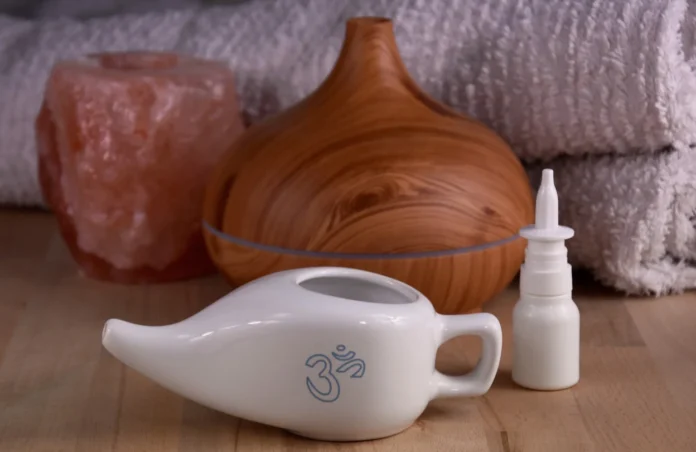 Using a neti pot or nasal rinse bottle, flush your nasal passages with a gentle saline solution made from salt and filtered water. This time-honored practice reduces swelling and removes allergens, bacteria, and excess mucus.